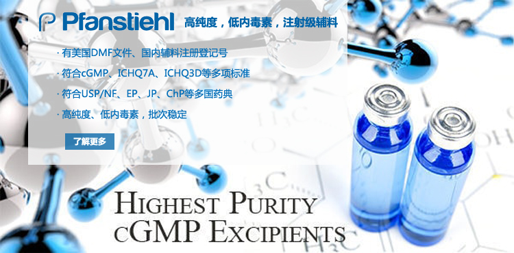“熱烈祝賀Pfanstiehl的注射級甘氨酸Glycine(G-140)喜獲CDE登記號F20250000403, 這是Pfanstiehl產品獲得的第18個CDE登記號!”甘氨酸在醫藥輔料制劑中應用廣泛,, 可作為緩沖劑,增溶劑,穩定劑等,具有諸多優勢。Pfanstiehl秉承一貫高品質理念,為滿足全球生物制藥行業對于高品質甘氨酸的需求,隆重推出的注射級甘氨酸Glycine (G-140), 具有超高純度,超低內毒素,超低金屬殘留的特點,單獨檢測29種金屬離子,并且新增DNA,RNA,DNA酶,RNA酶和脂肪酶,亞硝酸鹽等多項質量指標的檢測,符合多國藥典規定(USP, EP, BP, JPE, ChP),可用于生物治療性藥物和疫苗的生產。產品信息:· 產品名稱:Glycine, High Purity, Low Endotoxin, Low Metals, USP, EP, BP, JPE, ChP (G-140)· 中文名稱:甘氨酸· 分子式:C2H5NO2· 分子量:75.07 g / mol· CAS號:56-40-6· 產品貨號:G-140產品特點: · 超高純度,超低內毒素,超低微生物含量,超低金屬雜質殘留· 質量指標新增DNA,RNA,DNA酶,RNA酶,脂肪酶和亞硝酸鹽檢測· 符合多國藥典:USP, EP, BP, JPE, ChP· 符合ICH Q3D標準· 符合GMP標準· 已獲DMF和CDE登記號 產品應用:· 緩沖劑· 穩定劑· 增溶劑如果您對Pfanstiehl注射級別Glycine G-140感興趣,歡迎聯系Pfanstiehl 中國區代理商北京西美杰科技有限公司獲得如下詳細的產品概況說明文件和測試樣品。Pfanstiehl Inc.最新產品系列如下,歡迎聯系北京西美杰科技有限公司獲取100g裝免費樣品。北京西美杰科技有限公司為Pfanstiehl中國代理,為客戶提供完善的技術支持與售后服務。歡迎撥打西美杰客服電話400-050-4006或者登陸網站www_xmjsci_com.czhnqc.com了解更多信息。 更多>